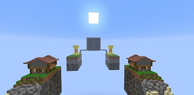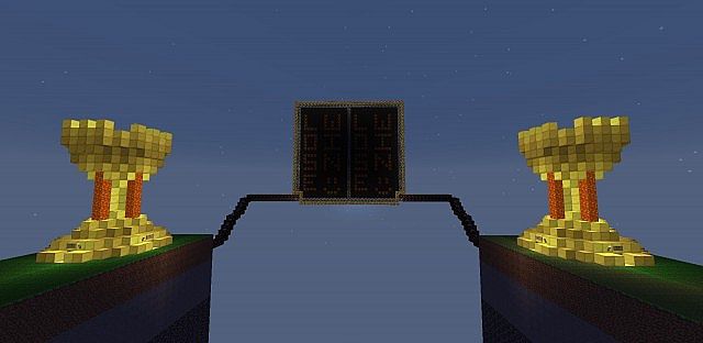 This map is a race between two teams to find and secure 3 pieces of wool. the players start on a platform and once both teams are ready they drop into the world and begin the challenge. once each of the pieces of wool are found they should be taken to the last island, then placed in one of the three slots. after all wool has been collected and secure in the slots then the board at the end of the map will light up and show which team won and lost.