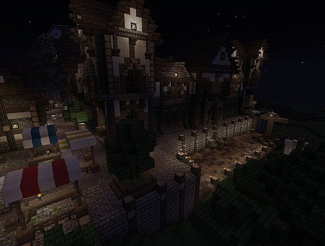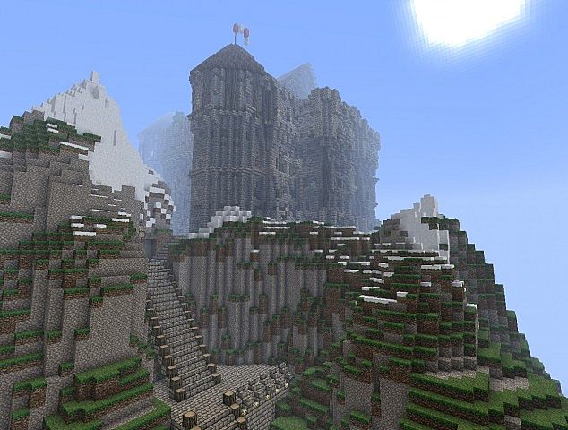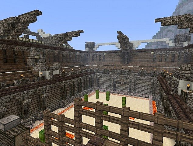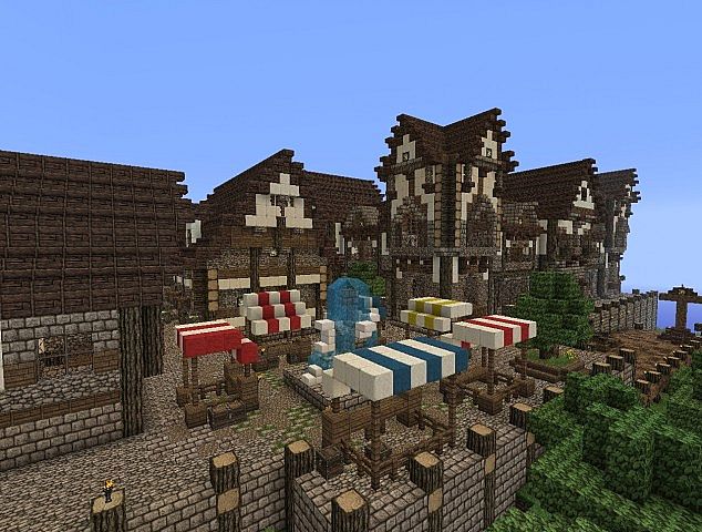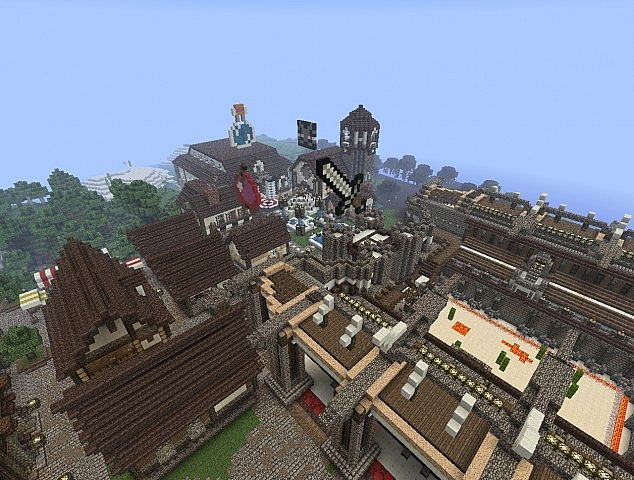 Build includes: Arena, A small boat, Spawn area, A huge castle, small shops, Pig farm, a mountain.
