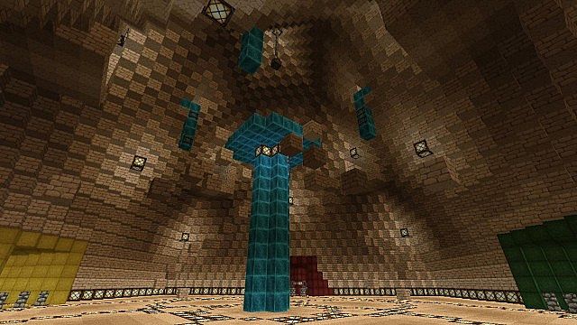 Pyramid Punchout: Fighting Map - A Desroid Battle [1.7.2]This map took 2 days to make, (wow....) and I hope you enjoy it. Have fun beating your friends to death in a captivating arena; a pyramid. Of course. There are four teams; the red, blue, green, and yellow teams. To know what team a player is on, simply look at the color of their hat (cap). Parkour up to the top of the diamond pillar for some awesome loot, then try to get the chest that's hanging from the ceiling. Just try. And just so you know, the parkour is pretty difficult, but not impossible! Now, why are you still reading this? Just go fight!No Rules, Just Fight!Recommended Texture Pack: Atherys AscendedAdditional Notes