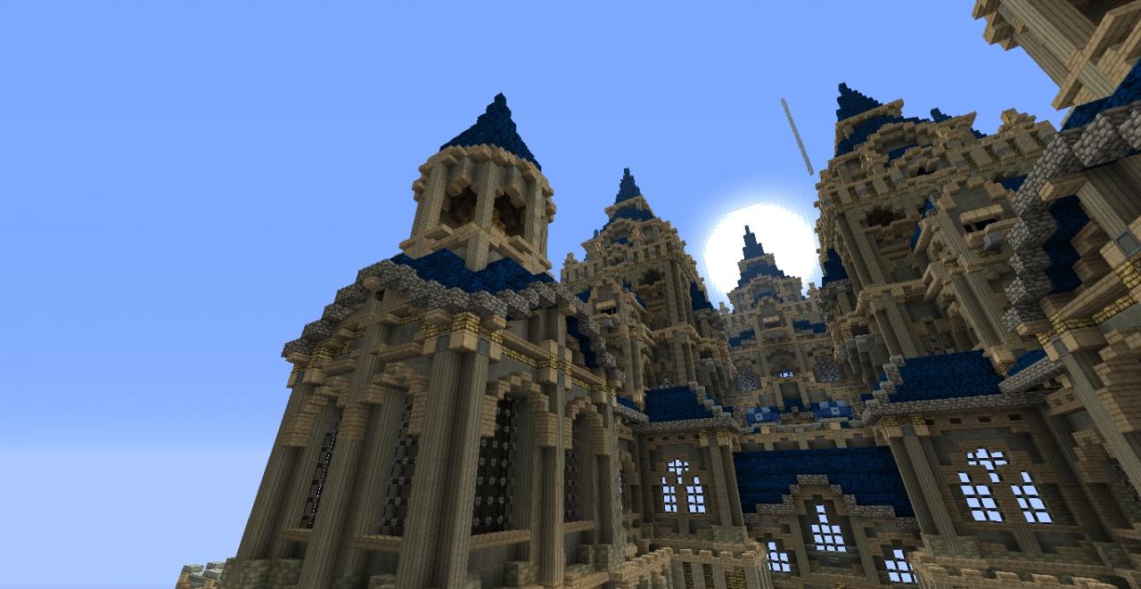 This is a 7(?) month old build, and its components have been used to make various builds, including Wrath Of The Fallen, some commissions that Notux did (without asking me), an upcoming minesiege castle, and a map or two on Super Craft Bros. As a result, anyone viewing this will very likely recognize certain components from projects posted prior to this one, including the many bell towers in the front, and the clock tower in the middle. I haven't been working on this thing for a while, now, and it likely won't be part of any future projects, so I've decided to post it unfinished.