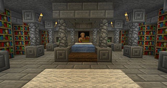 Great build. I like the glowing stalactites and the statue. The automatic info-feature at the library is an awesome idea (improvement idea: remove the signs, the plates at the floor are enough, imo).